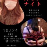 - 10月24日(金)21時から縛られナイト10月24日(金)縛られナイト開催します 参加定員は埋まってます 来月から第3金曜日を定期的に開催予定です 宜しくお願いします