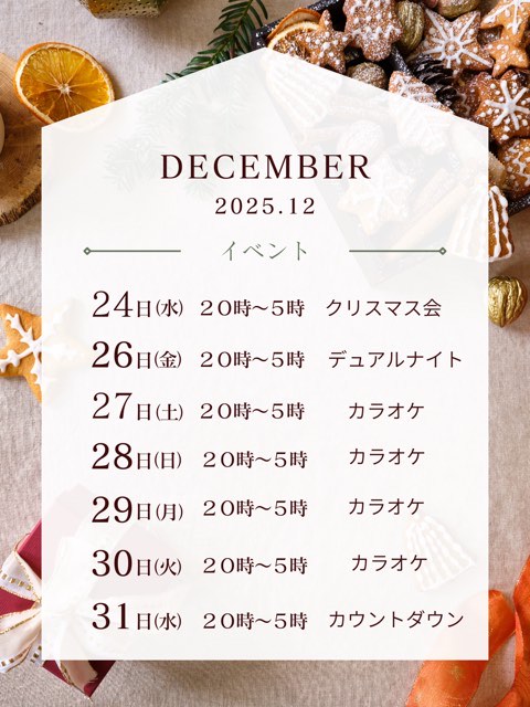年末のイベント及び営業時間は下記の画像通りとなります、宜しくお願いします