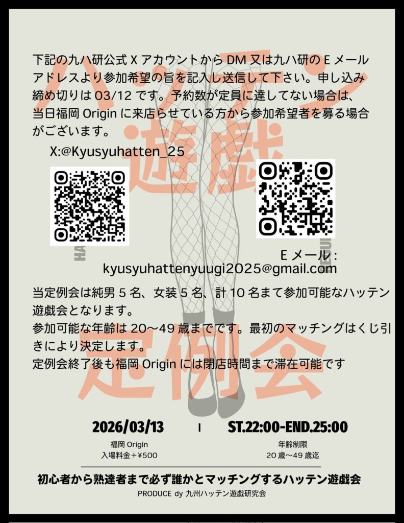 今月のハッテン遊戯定例会は